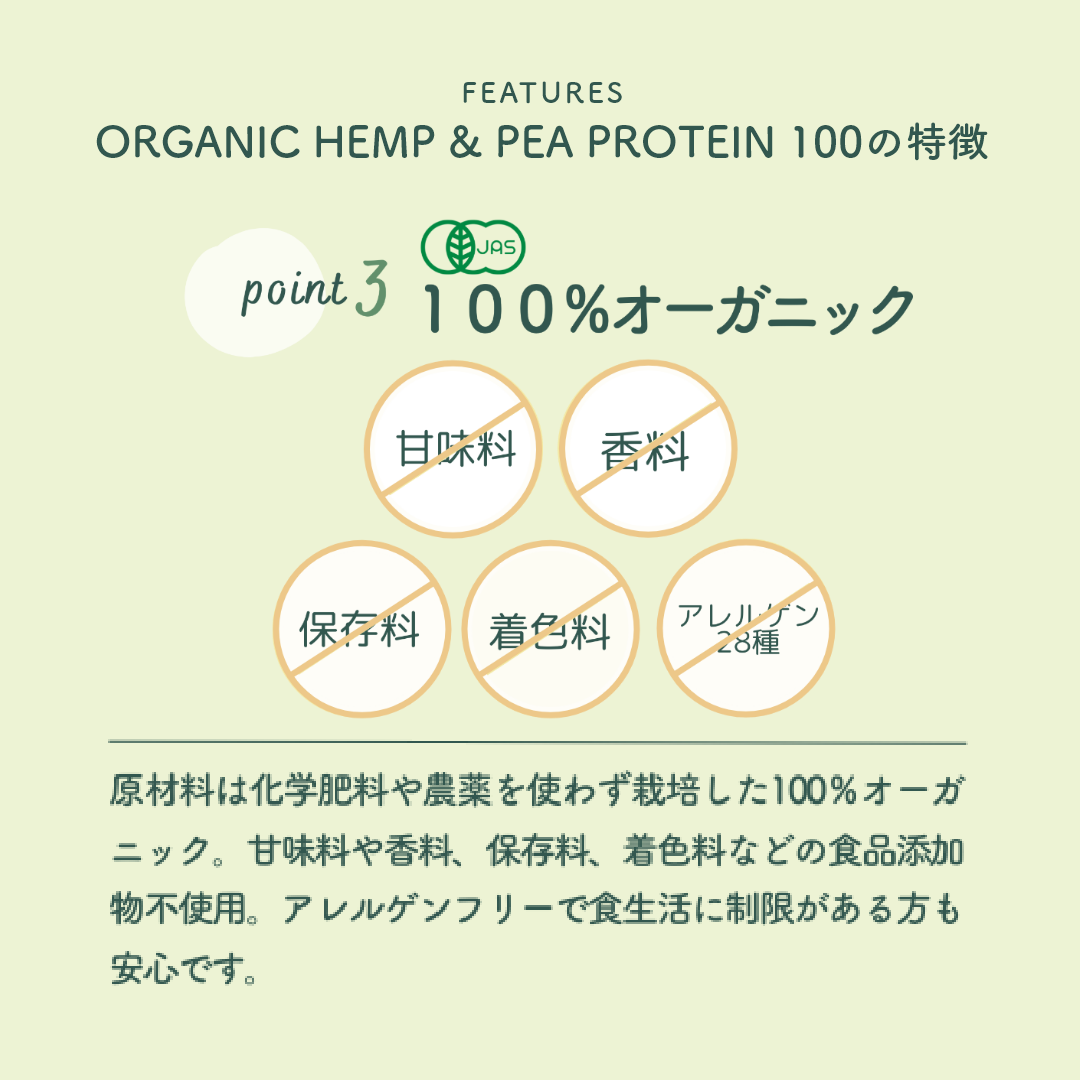 【原材料名】有機麻の実粉末、有機エンドウ豆粉末